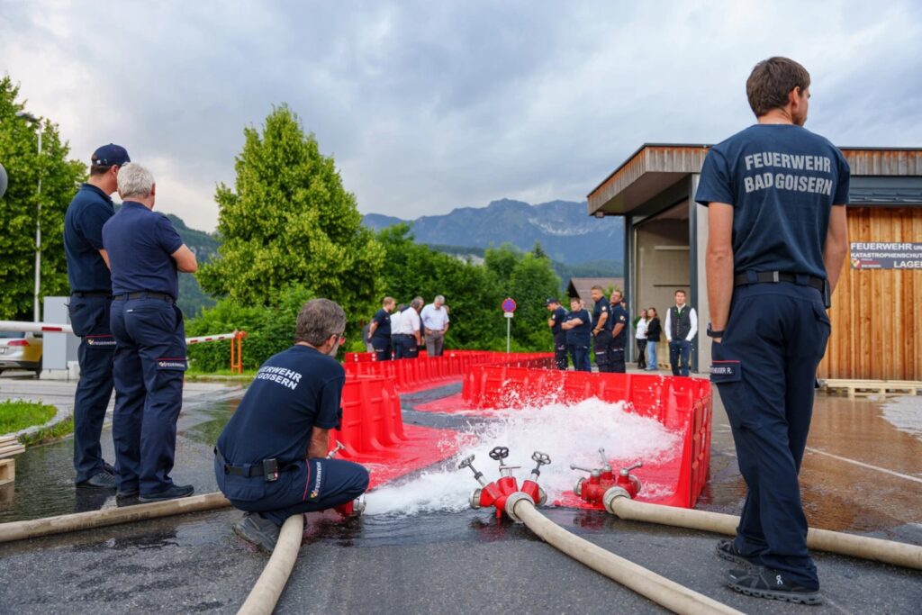 交付的模組分配給 Goisern、Weißenbach、Lasern 和 St. Agatha 四地的消防隊,以確保全面的作戰準備。在正式交接儀式中,系統於演練中進行了示範,包括搭建測試水道,以真實模擬洪水情境。